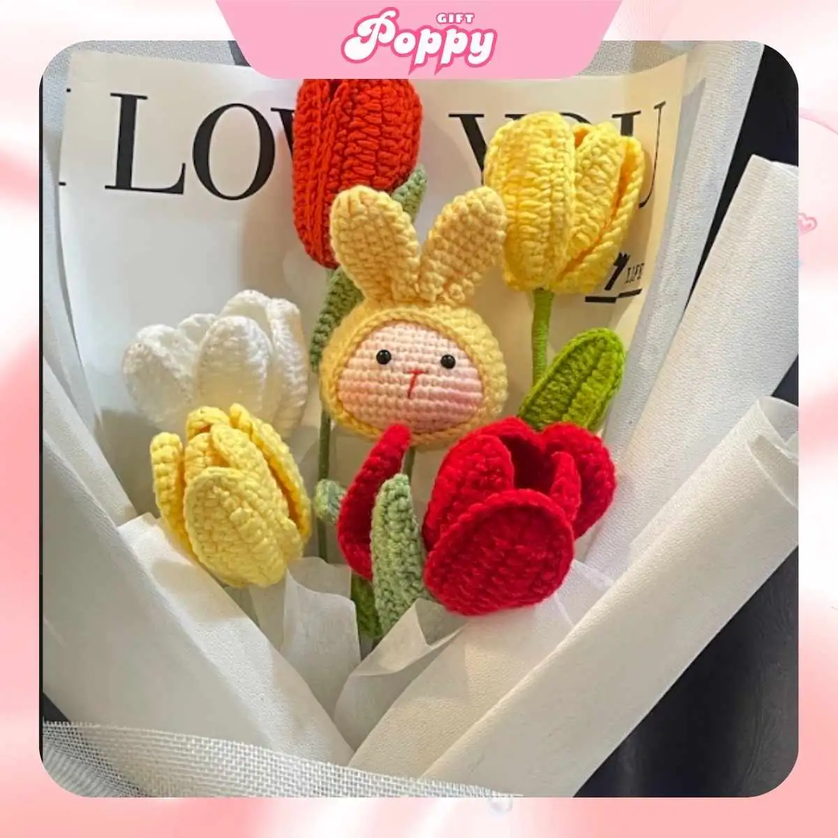 Bó hoa len handmade hoa tulip thỏ vàng tặng Sinh Nhật Lễ Kỉ Niệm Crush, Bạn Bè, Người Yêu Nhiều Màu