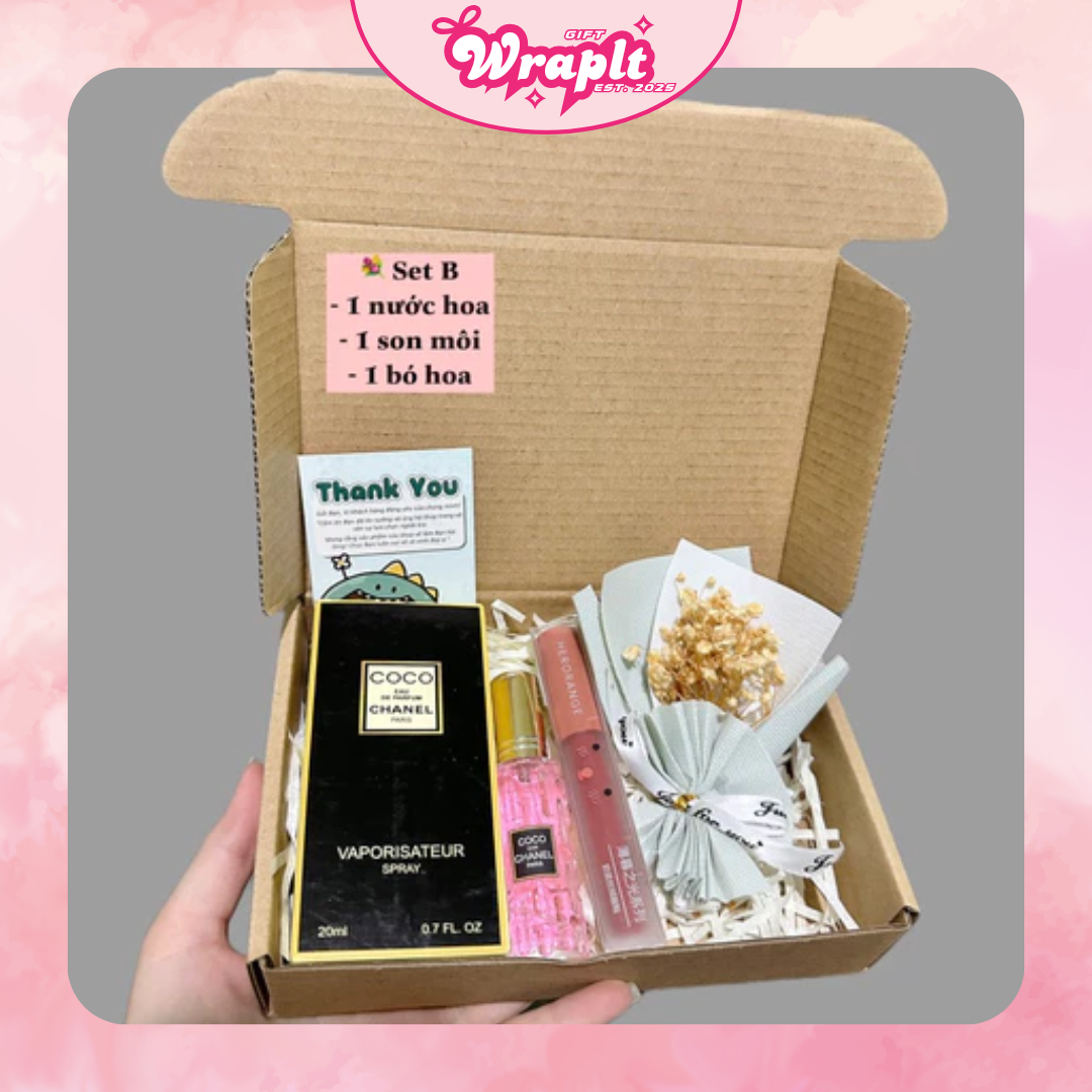 Bạn đang tìm kiếm một món quà tinh tế, sang trọng dành tặng người yêu, bạn bè hoặc đối tác? Set quà tặng nước hoa + son Herorange + bó hoa khô là lựa chọn hoàn hảo, vừa đẹp, vừa ý nghĩa!